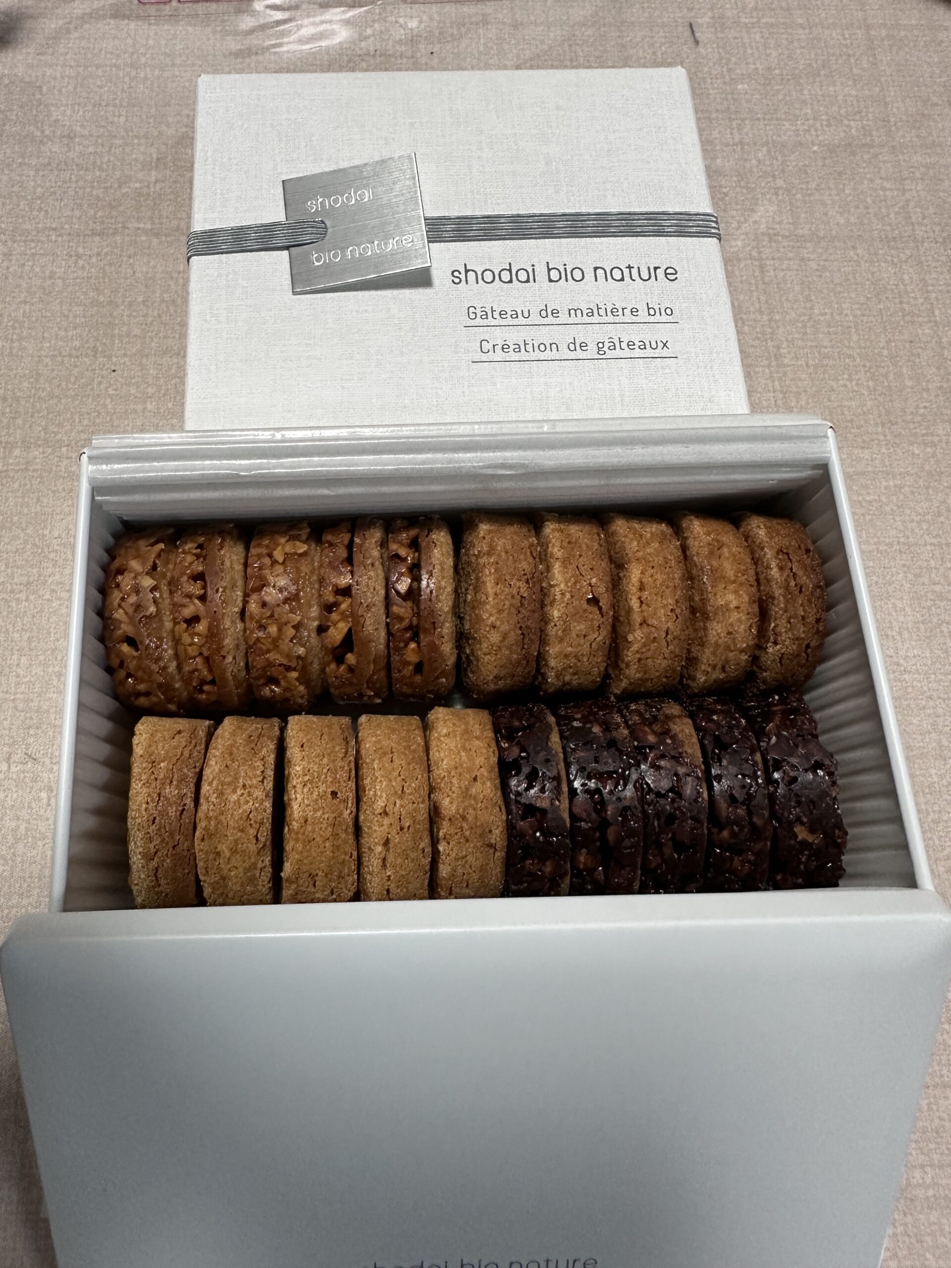 これは、shodai bio natureのクッキー。他にもオランジェ買いました。自腹で。他にも買って、仕事関係に配りました。スイーツは貰って嫌がる人はいないね!